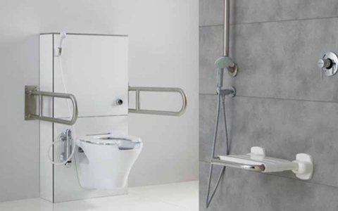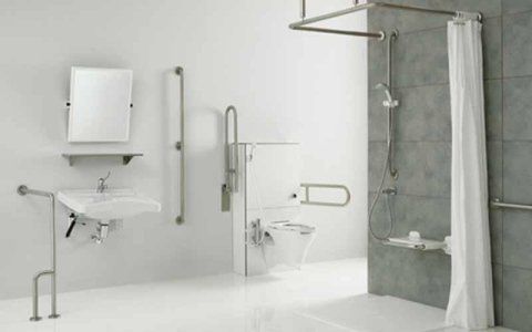Tra gli articoli per i disabili rientrano sanitari con misure comode, maniglioni di appoggio, box doccia con piatto a filo pavimento e vasche con sportello di accesso.